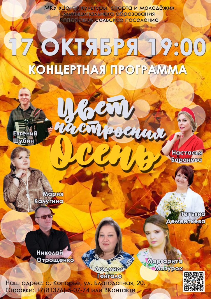 ⚡️ Приглашаем вас провести вечер в атмосфере тепла и гармонии на песенно-танцевальной программе «Цвет Настроения Осень»!