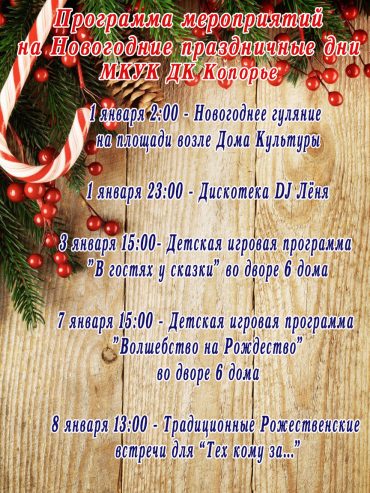 Программа мероприятий на Новогодние праздничные дни Опубликовано 22.12.2017 в рубрике Афиша, Мероприятия, Новости